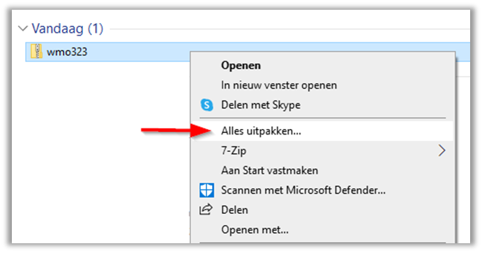 Pak het bestand vervolgens uit met ‘Alles uitpakken’ of ‘unzippen’.