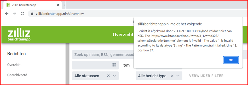 De melding ‘Bericht is afgekeurd door VECOZO: BRS13: Payload voldoet niet aan XSD….’