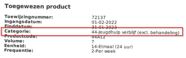 In het voorbeeld hieronder zie je een toewijzing voor categorie 44.