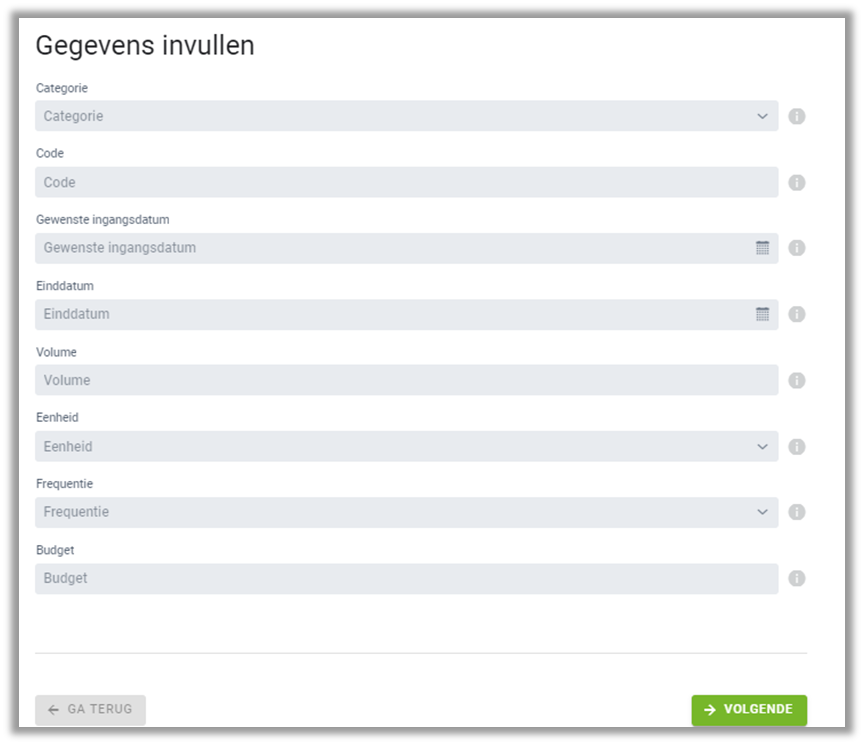 NB: Als je dit veld invult, vul je ook de Einddatum in. | Vul dit veld alleen wanneer je productcode, Volume, Eenheid en Frequentie leeg laat. |